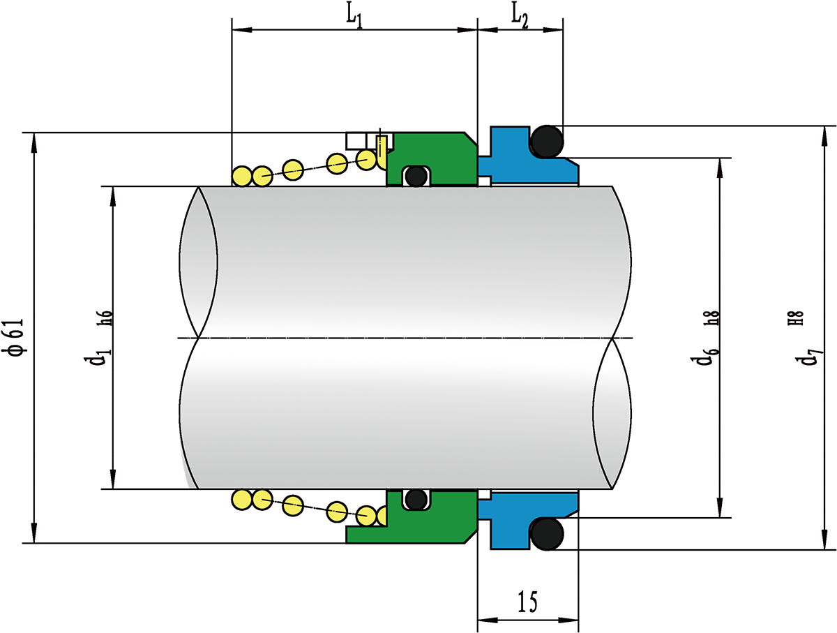 動環(huán)(Rotary Ring): Q1,Q2,U1 靜環(huán)(Seat Ring):Q1,Q2,U1 輔助密封(Secondary Seal):E,V,S,M2,M5 彈簧及結構件(Spring and Metal Parts):G,M